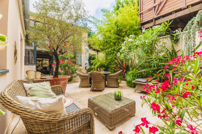 Au cœur de son parc de 2400 m2 calme et joliment arboré, élégante propriété de 255 M2, avec piscine, pool house aménagé de 59 m2, salon d’été et Studio indépendant, idéalement organisée pour...