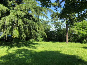 Caluire et Cuire, au Vernay, en retrait total, secteur très résidentiel, au calme sans vis-à-vis, très belle vue Saône et Monts d’Or, espace boisé sur tout un côté, terrain clos entièrement plat...